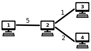 Tämän jälkeen on n-1 riviä, jotka kuvaavat yhteydet. Jokaisella rivillä on kolme lukua a, b ja x: koneiden a ja b välissä on yhteys, jonka siirtonopeus on x.