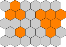 Seuraavassa kuvassa on värjätty oranssilla kolme mahdollista reikää, jotka voisit leikata. Yksi rei'istä on on kokoa T=1. Toinen reikä on kokoa T=2 ja sen kärki osoittaa ylöspäin. Kolmas reikä on kokoa T=3 ja sen kärki osoittaa alaspäin.