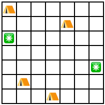 Voit olettaa, että jokaisessa ruudussa on enintään yksi telttapaikka.