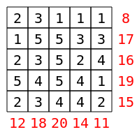 Your task is to construct an n \times n grid where each square contains an integer between 1 \ldots n. There are two requirements: