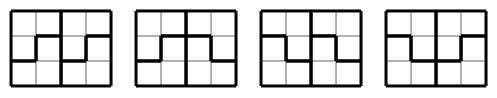 Esimerkiksi 3 \times 4 -ruudukko on mahdollista peittää 4 tavalla:
