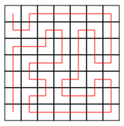 7 \times 7 -ruudukossa vasemmasta yläkulmasta vasempaan alakulmaan on 88418 erilaista reittiä. Jokaista reittiä vastaa 48-merkkinen kuvaus, joka muodostuu merkeistä A (alas), Y (ylös), V (vasen) ja O (oikea).