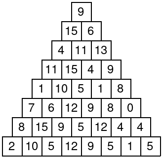 Consider a xor pyramid where each number is the xor of lower-left and lower-right numbers. Here is an example pyramid: