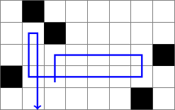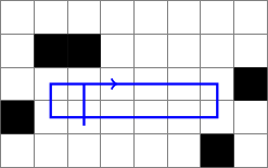 Robotti liikkuu ruudukossa pysty- ja vaakasuuntaisesti. Robotin suunta alussa on ylöspäin ja robotti kääntyy oikealle aina, kun sen edessä on este.